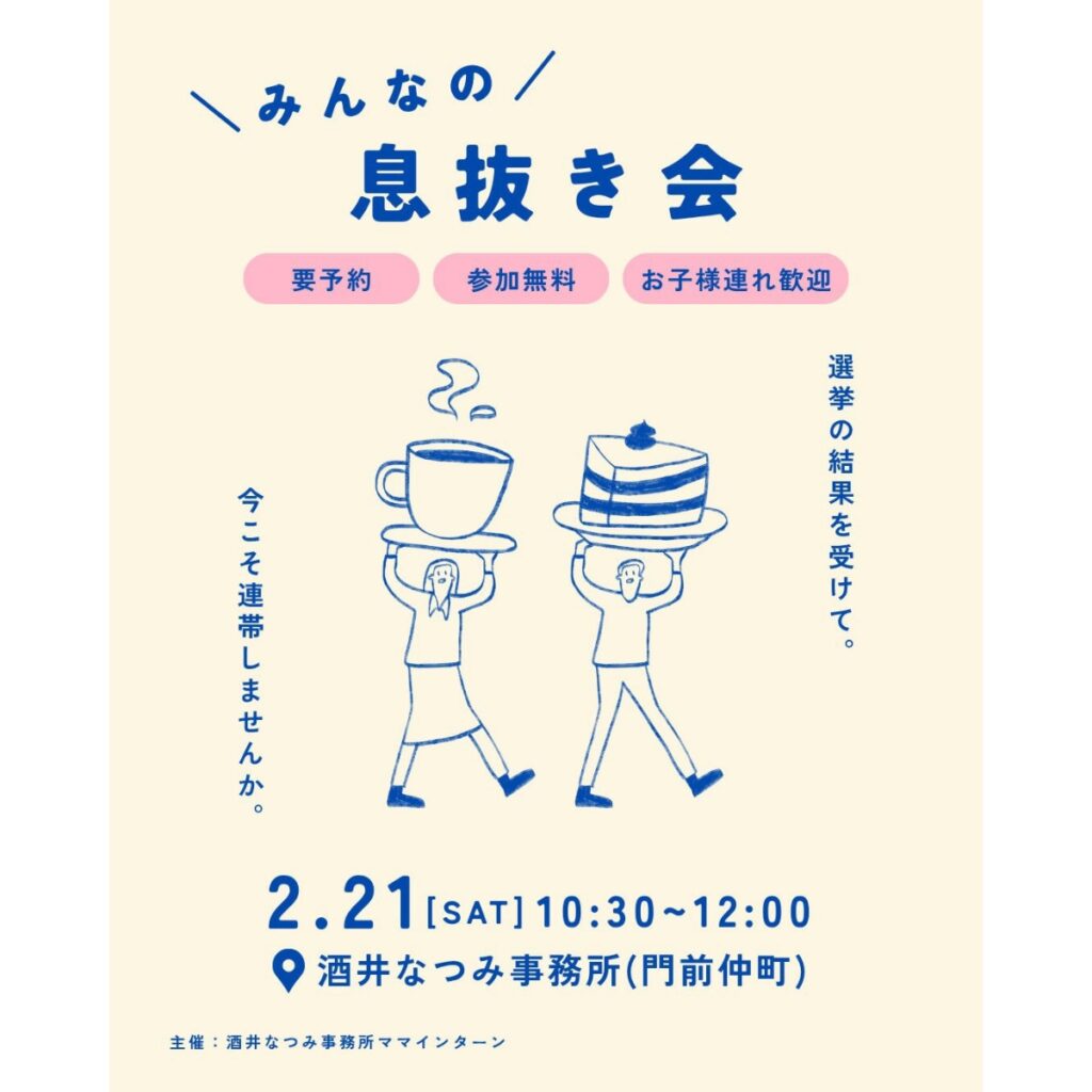 選挙の振り返りとモヤモヤなどを話す場を設けます。 日頃は【ママ達たちの息抜き会】と称し、ママインターン主催で行っているお話会です。 選挙の結果を受けて、今こそ連帯しませんか? 参加無料・お子様連れ歓迎 下記より予約の上、ご参加ください。